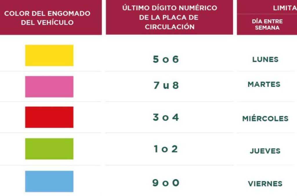 - Viernes: No circulan aquellos que tengan engomado azul y terminación de placa 9 o 0.