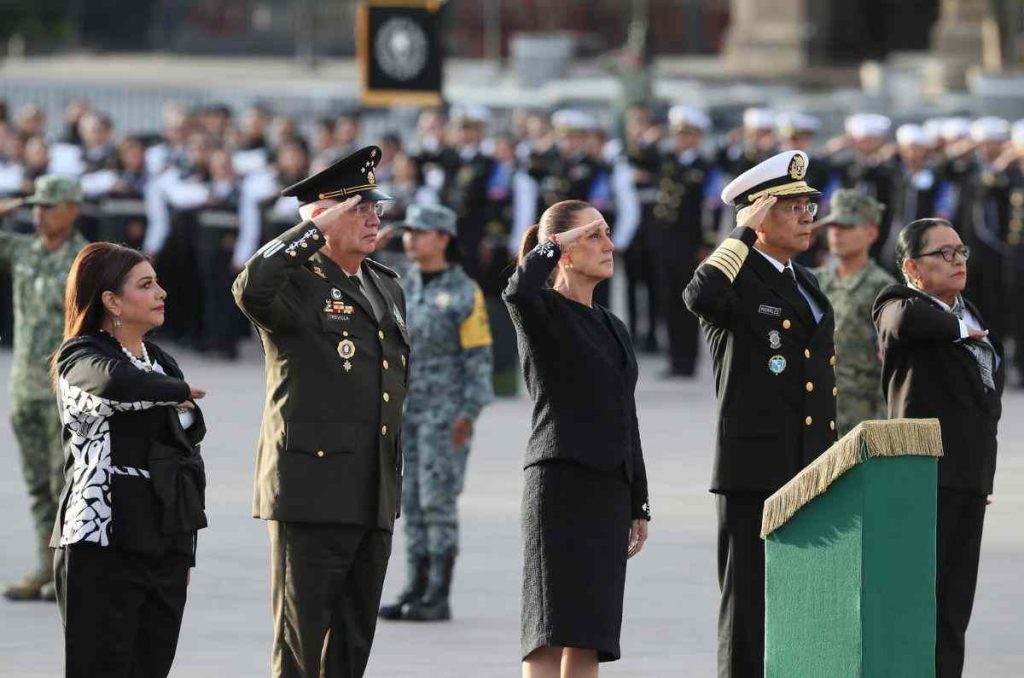 Rodeada de elementos del Ejército mexicano, de la Guardia Nacional funcionarios de su gabinete, de la jefa de Gobierno de la Ciudad de México, Clara Brugada, y directores de Protección Civil y de la Cruz Roja Mexicana, la mandataria izó la bandera a media asta para honrar a las decenas de miles de víctimas de ambos terremotos.