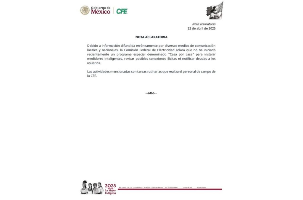 La CFE enfatizó que esta nota aclaratoria tiene como objetivo evitar confusiones entre los usuarios y prevenir posibles fraudes o suplantaciones de identidad.
