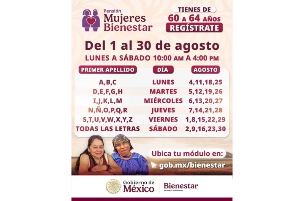 A partir de agosto, el Gobierno de México abrió un nuevo periodo de registro para el Programa Mujeres con Bienestar o Pensión Mujeres Bienestar, dirigido a mujeres de 60 a 64 años.