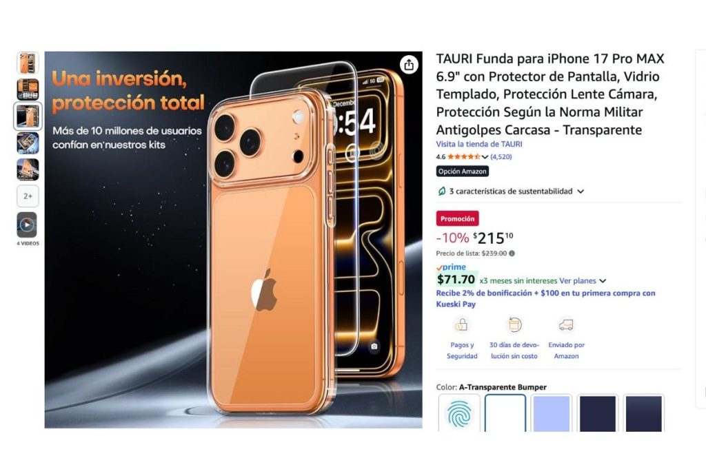 Una de las opciones más populares en Amazon México es la funda TAURI para iPhone 17 Pro Max, la cual ha ganado buena reputación entre los usuarios por combinar diseño, protección y precio accesible.