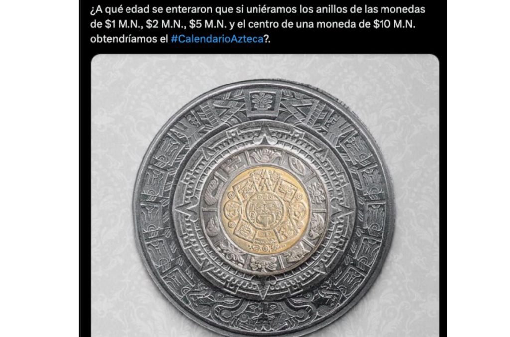 La idea es simple pero fascinante: si unes los anillos de estas monedas, notarás que forman un rompecabezas simbólico que representa el tiempo, la energía y el universo según los antiguos aztecas.