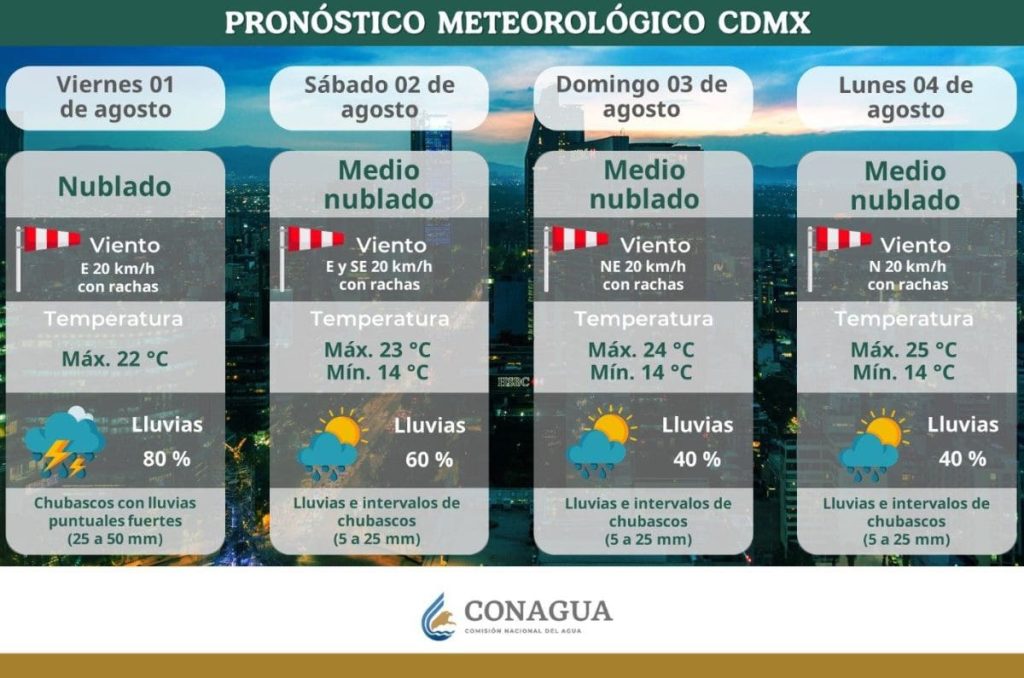 Por ello, si quieres saber cómo vestirte y si será necesario sacar el paraguas para es fin, aquí te dejamos el pronóstico del clima en la Ciudad de México para este sábado 2 y domingo 3 de agosto.