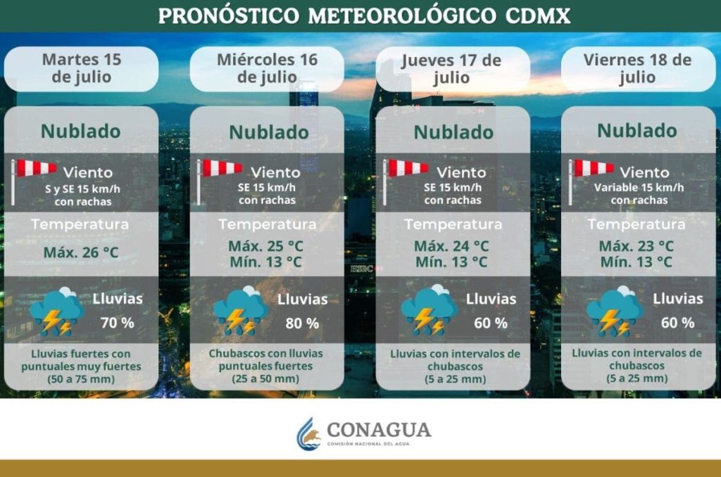 Debido a ello, y con la intención de que puedas tomar tus precauciones, aquí te dejamos todos los detalles del clima para este miércoles de acuerdo al reporte emitido por el Servicio Meteorológico Nacional de Conagua.