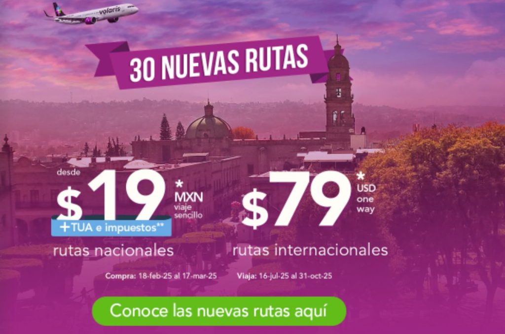 Volaris lanza 30 nuevas rutas nacionales e internacionales: Esto costarán los boletos