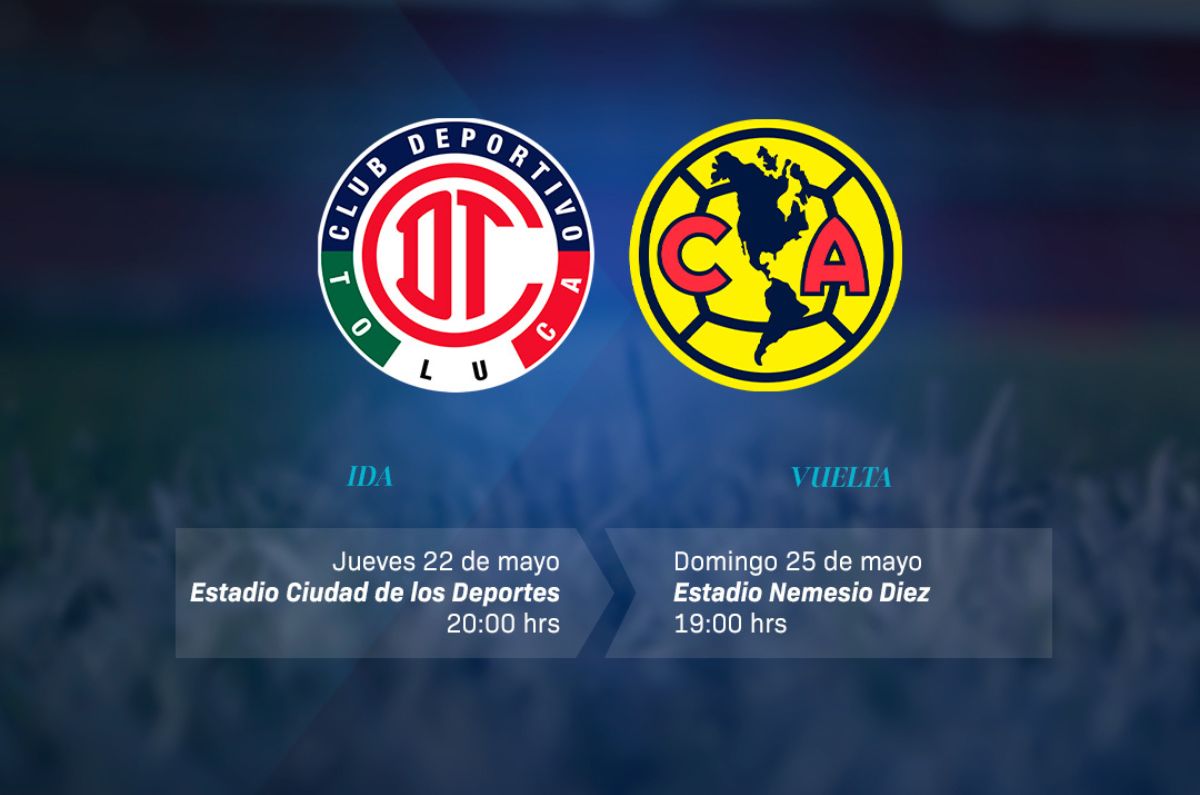 - Toluca vs América: Domingo 25 de mayo, 19:00 horas. Transmisión por Canal 5 y TUDN.