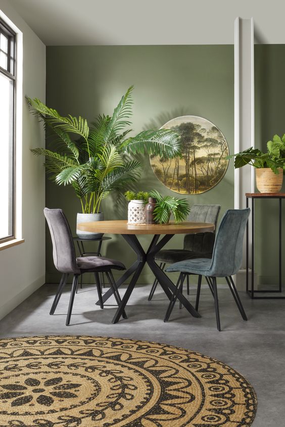 El verde suma a cualquier espacio de tu casa una esencia natural que puede ser sumamente elegante. Complementa con tonalidades oscuras como negro y café, y complementa con acentos en dorado.