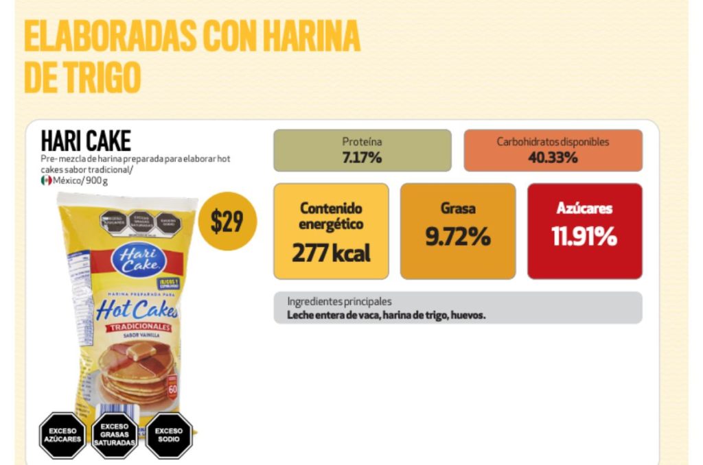 Según lo indicado por la Procuraduría, este producto, catalogado como Pre-mezcla para hacer hot cakes sabor tradicional y elaborada con harina de trigo, no presenta ningún incumplimiento, información falsa u omisión de la misma en sus datos de la etiqueta.