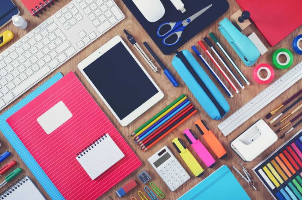 - Lápiz, bicolor, bolígrafo, marcatextos, sacapuntas, goma para borrar, tijeras y lápiz adhesivo.