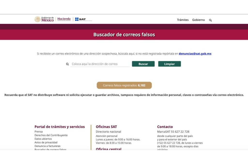 Para ello, una de las formas más efectivas y rápidas es a través del Buscador de correos falsos, una herramienta que el mismo SAT ha creado para su uso. para ello, solo debes seguir estos pasos: